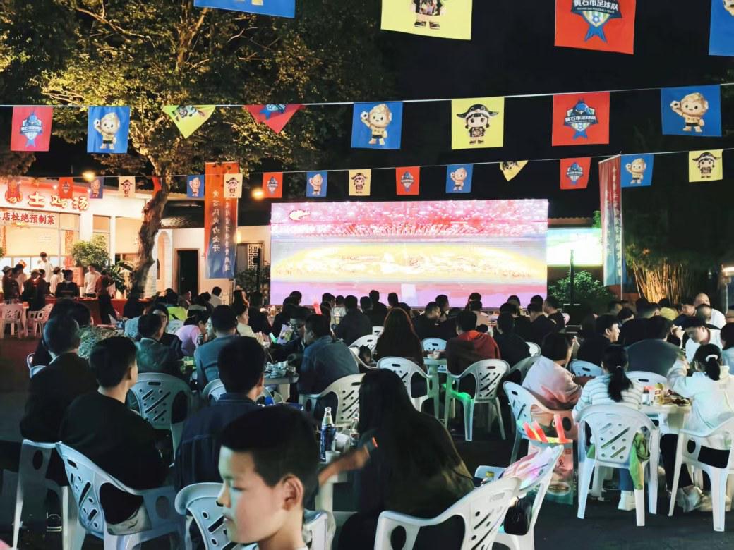 作为“楚超”黄石赛区赞助商之一的小农家土菜馆,12日晚户外大屏前座无虚席。该店准备了600斤小龙虾、5000瓶啤酒免费招待球迷,中场啤酒挑战赛、足球互动游戏轮番上演,球迷举杯同庆,现场氛围热烈。“在这里看球太爽了,美食管够,氛围拉满!”从武汉赶来的球迷李源表示,观赛体验超出预期。