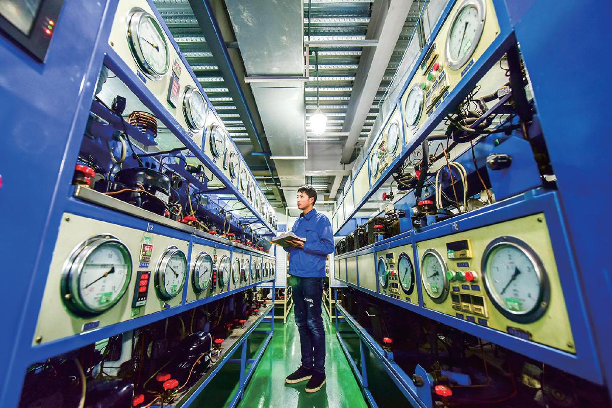 走进东贝技术研发中心,EMC室、冰箱工况实验室、性能研究室布局井然,精密仪器24小时不停运转。数十台压缩机在高温、高压等极端工况下持续接受考验——制冷量、功率、电流、COP值、启动性能、壳体温度、绕组温度、噪音、含水量……每一项指标都被抠到极致。这里既能按客户需求定制产品,也为东贝啃“硬骨头”、搞基础研究提供了坚实底子。