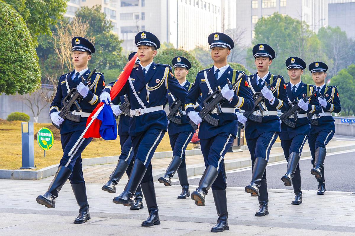 当天上午9时30分,升警旗仪式在市公安局业务技术大楼广场前举行。护旗手高擎警旗正步入场,伴随着雄壮嘹亮的《中国人民警察警歌》,擎旗手挥臂扬旗,警旗迎风升起,全体民警向警旗敬礼。