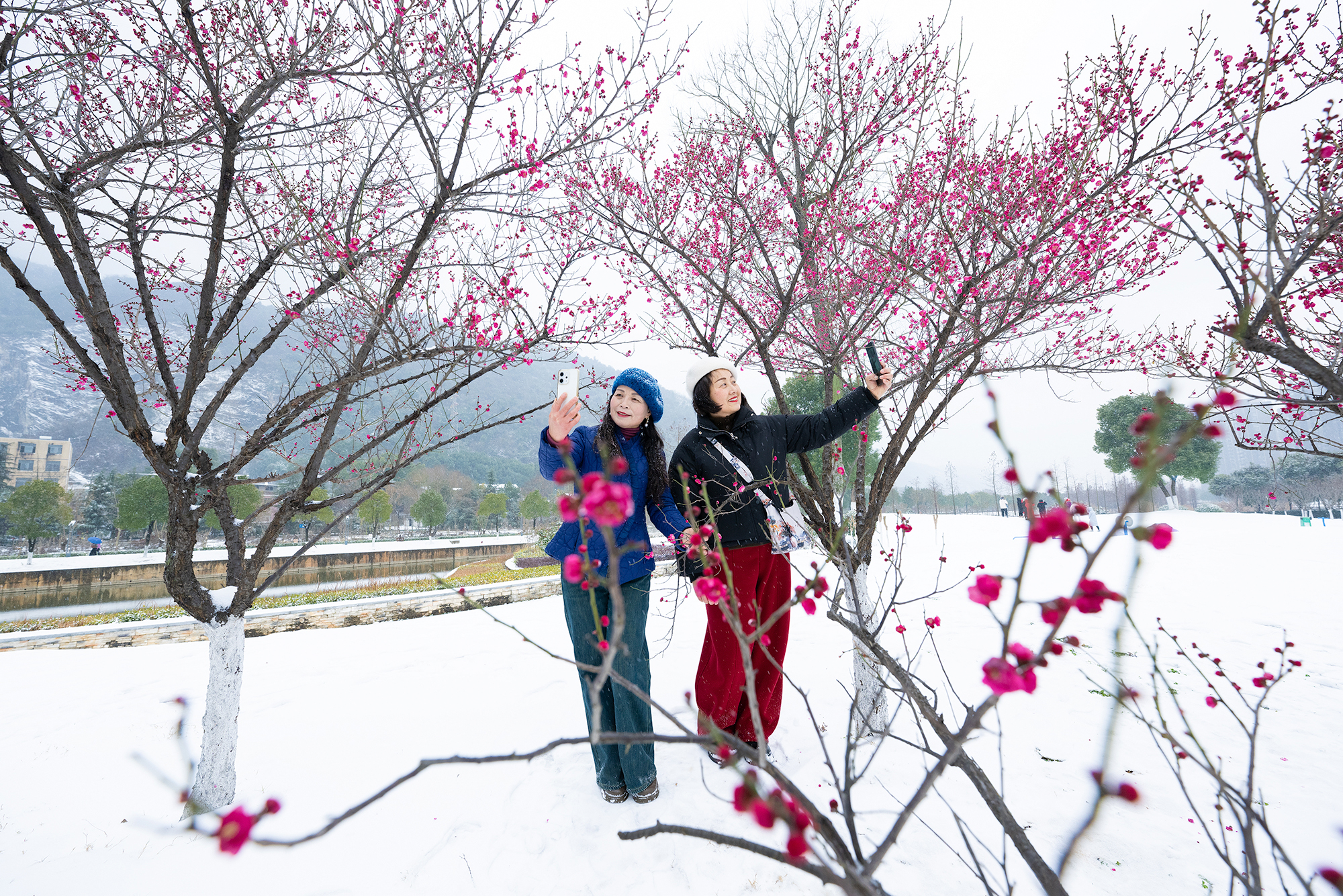 雪落成诗,梅开如画。这场不期而至的雪,不仅点缀了团城山的静谧园林,更在人们的笑语与驻足间,为2026年初黄石一道充满温情与诗意的“限定风景”。