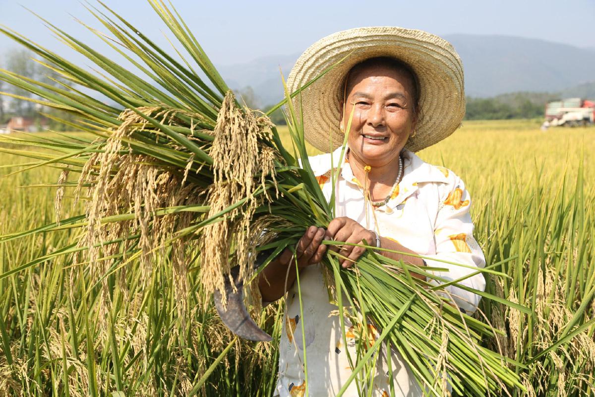 稻穗沉垂染金浪,秋收正当时。近日,阳新县龙港镇建海生态种养殖家庭农场的2200亩中稻喜迎丰收,亩产约1300斤的好收成让田间地头充满喜悦。图为农场工人刘七姐拾起稻谷,颗粒归仓。