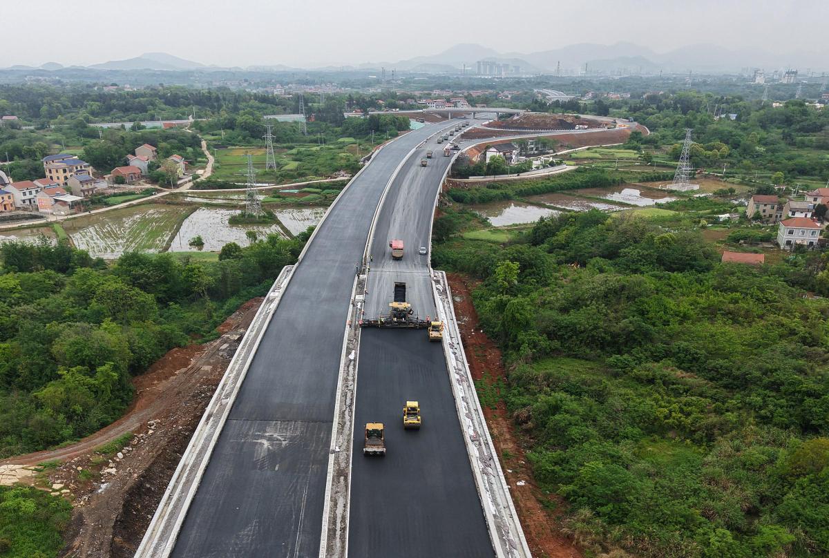 24日,花湖机场高速公路二期保安枢纽互通段正开展沥青摊铺作业。当前项目全线进入沥青刷黑施工高峰期,为6月底达到通车条件筑牢坚实基础。