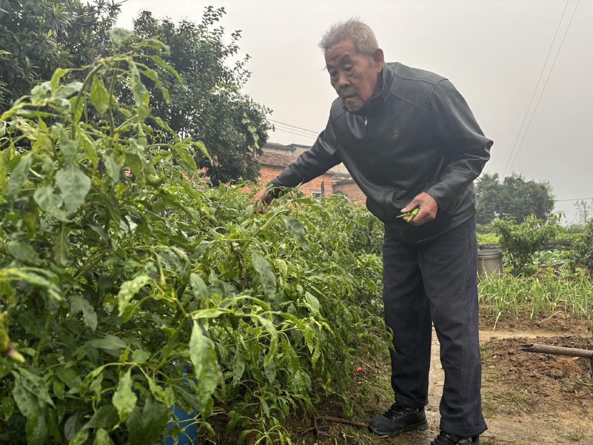 吴世华与老伴柯娇娥耕种几亩田地,种植粮油蔬菜。