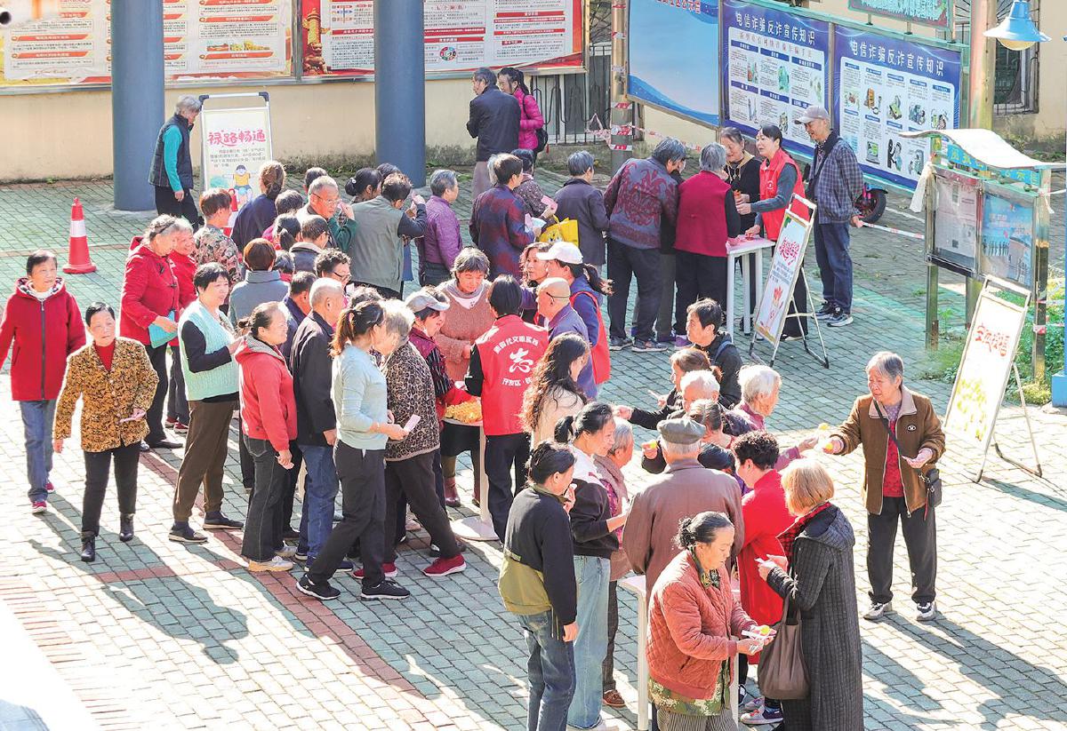 24日,开发区·铁山区矿山路社区新时代文明站开展“志愿‘赶大集’重阳暖人心”集中活动日活动。通过垃圾分类、家电维修、防诈宣传、爱心义诊等志愿服务和趣味游戏,丰富辖区居民的生活,增强社区凝聚力。(记者 鄢巍 通讯员 田红玉 摄)