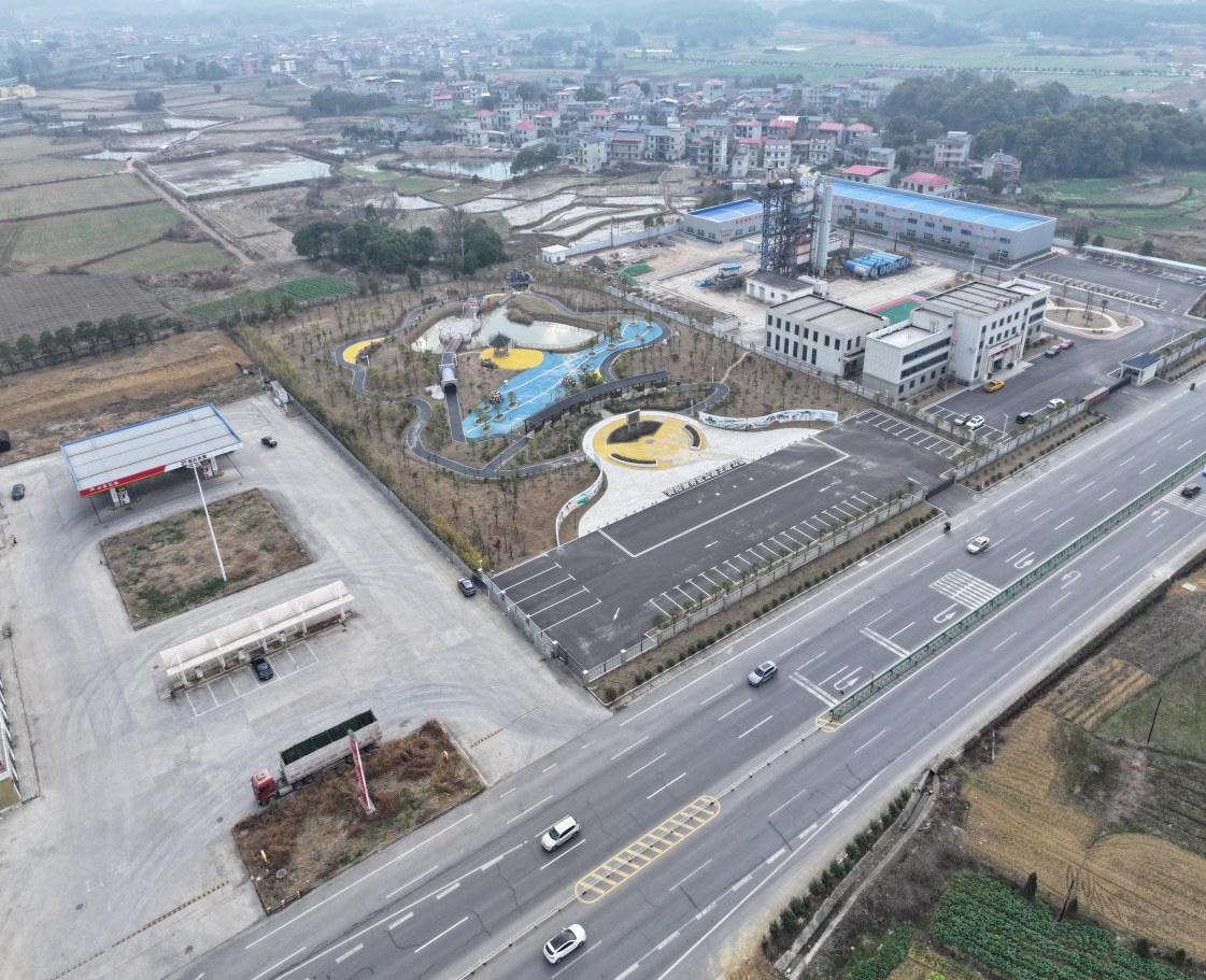 “妈妈,这里也有一座‘黄阳公路大桥’!”孩子稚嫩的声音里满是惊喜。李女士定睛一看,孩子所说的“大桥”,其实是公园内一处精致的微景观。这个春节前夕刚开园的公园,是黄石市首个以公路交通为主题建设的公园,总面积近15000平方米。园内不仅有山水小品、休闲设施,还有彩绘文化墙、科普长廊和公路人雕塑。立于公园广场两侧的两面彩绘文化墙,选取了14项古往今来具有代表性的公路线路或设施,用水墨风格连续彩绘辅以浮雕,成为最吸睛的打卡点。“我们就是被这两面墙吸引进来的。”李女士感慨道,这个服务区让返乡之路多了份舒适与温馨。