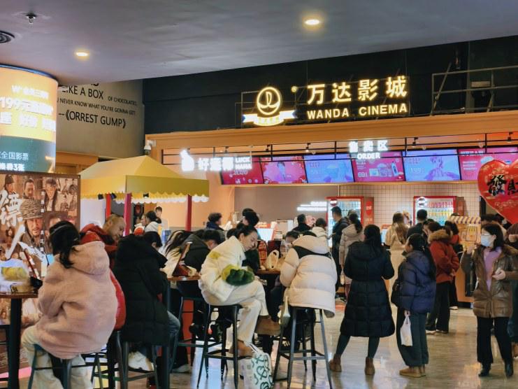 大年初一,团城山万达影城内休息区“一位难求”