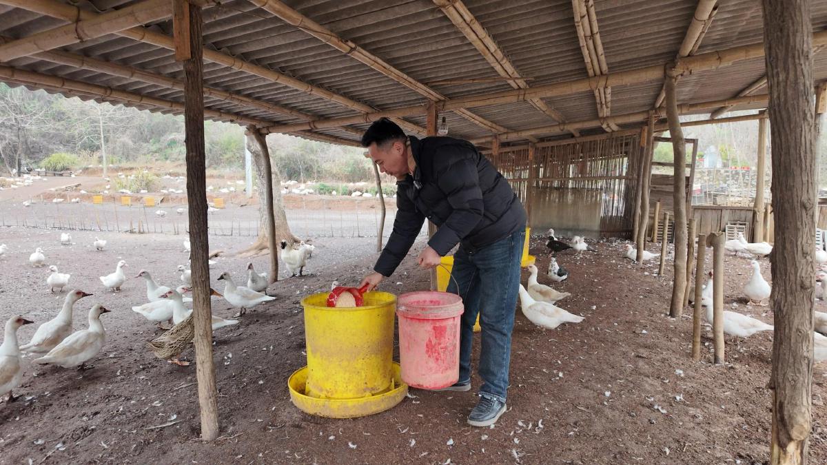 基地里,阳新屯鸟养殖协会秘书长、湖北华宴绿色食品有限公司总经理柯德刚,正蹲在棚舍旁仔细察看屯鸟的进食与生长情况。一身利落工装,一双沾着泥土的鞋子,透着踏实与干练。
