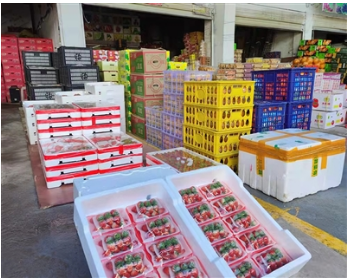 记者在联海集团水果批发市场里看到,各种柑桔、橙子、柚子、香梨、苹果等时令果品占据了各家商户铺面里的主要区域。一位批发商表示,市场里的草莓吸引了不少市民来尝鲜。本地草莓主要产自杨叶、浠水、鄂州,外地草莓主要有丹东的红颜草莓。丹东红颜草莓根据个头大小不同,批发价为20-26元/斤。“今年秋冬果品的批发价格要比往年便宜10-20%。”联海集团水果批发市场相关负责人表示,目前,该市场销量最大的是柑桔和橙子类水果。