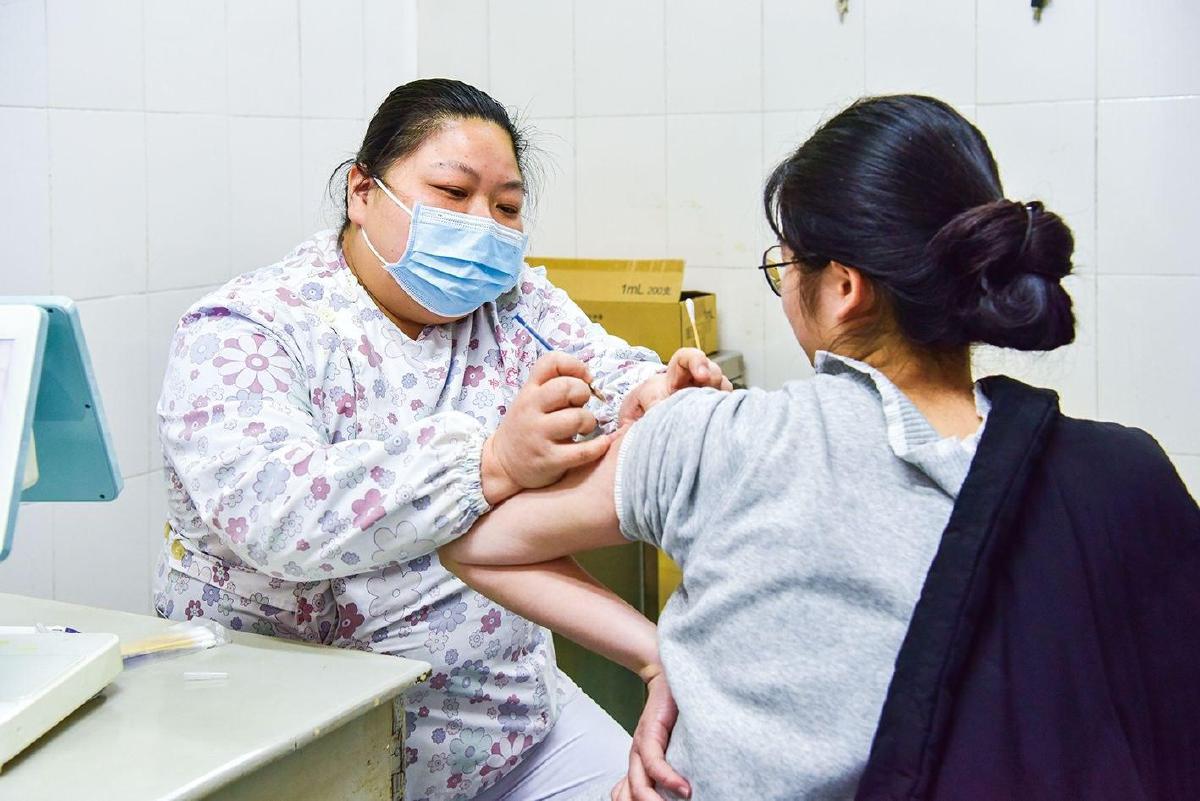 市中医医院钟楼院区预防接种门诊医护人员在为群众接种流感疫苗