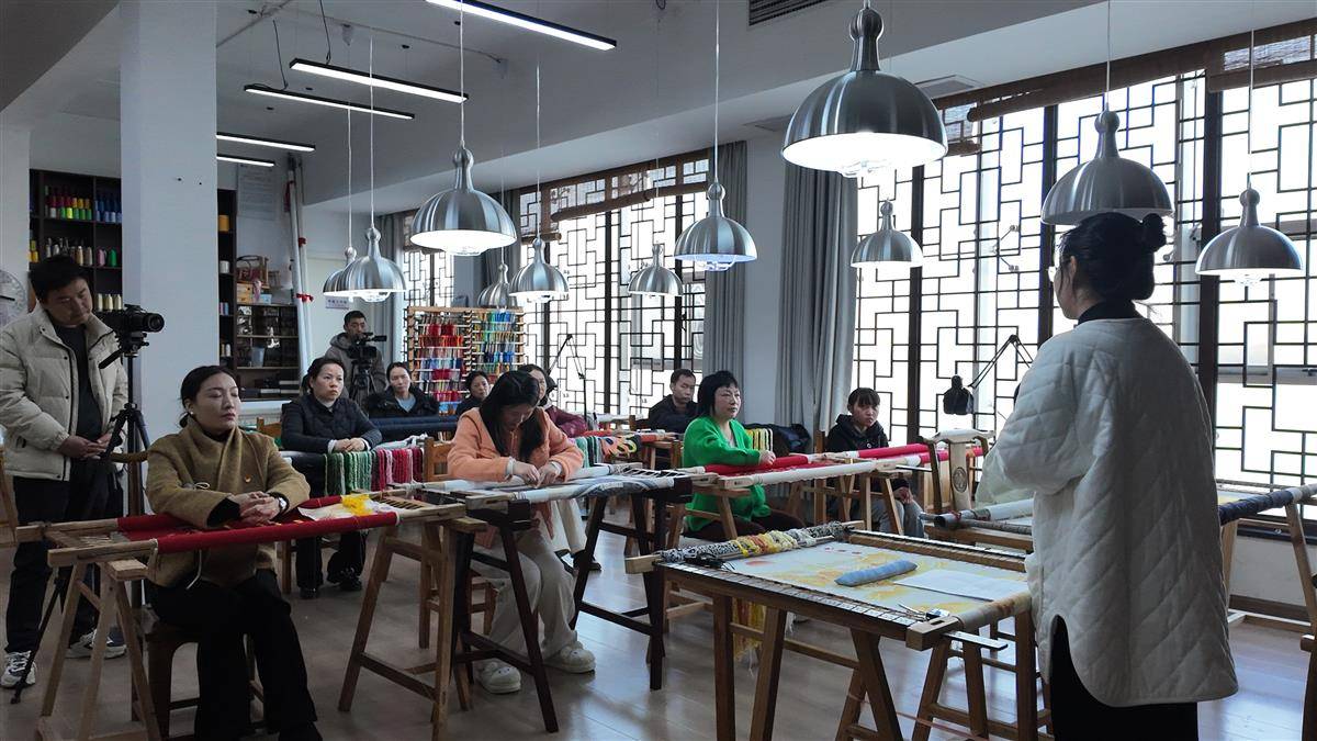 “党的二十届四中全会为非遗传承指明了哪些新方向?绣花针如何跟上新时代好政策?指尖功夫如何变成稳稳的收入?”没有冗长的文稿,也没有生硬的道理,望着熟悉的姐妹们,彭肖肖用一连串的接地气提问,一下子抓住了绣娘们的注意力,将宏大的全会精神拉到了绣绷前、针线间。