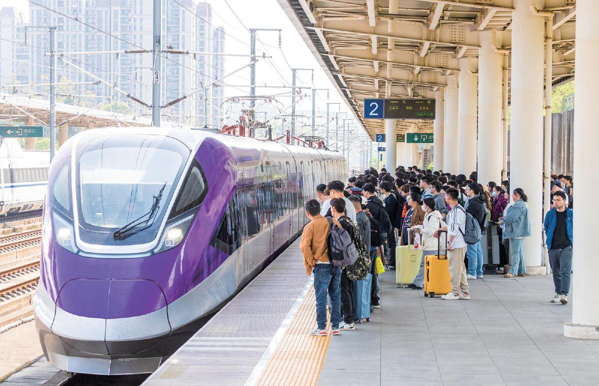 旅客在黄石北站有序等候“新城快线”(资料图)
