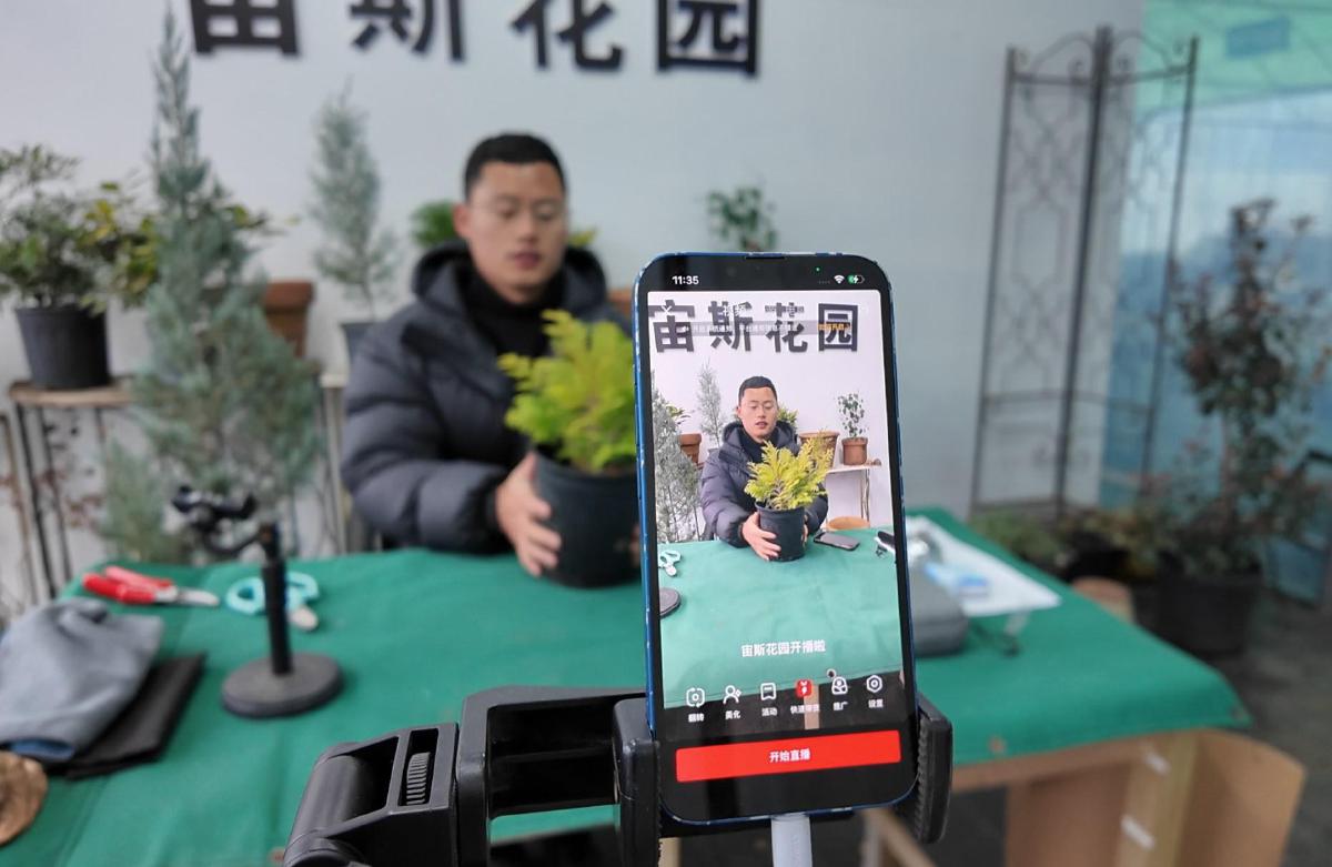 “柏树、杉树都有,我带你们去转转!”1月30日,在大冶市刘仁八镇天灯村胡咀头湾的“宙斯花园”里,倪睿鑫与直播间的网友们正在火热互动。看到有留言想看热销款,倪睿鑫立刻拿起手机,向寒意尚存的室外走去,在苗圃边开始为大家介绍各类花卉苗木。镜头扫过一片片青翠的苗木,订单在互动中不断生成。