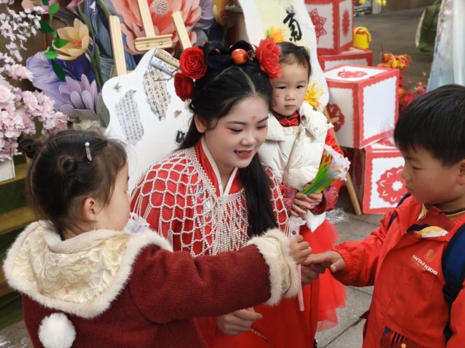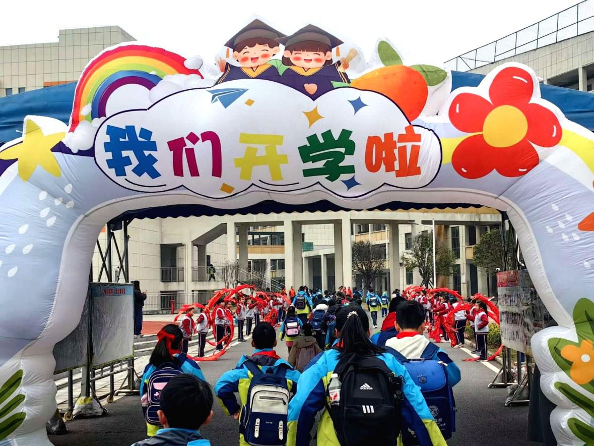 黄石十四中校园大门处,一块贴有“跃马扬鞭 福启新程”“加油,新学期”等标语的红色拱门矗立,迎接学子进校。大冶市机关幼儿园春季开学仪式上,教师化身“十二花神”,着汉服列队,以《春晓》《梅花》等幼儿耳熟能详的经典古诗与萌娃互动。