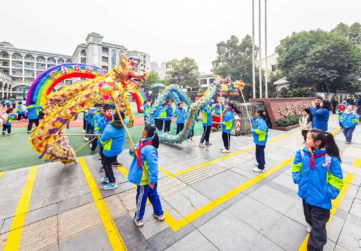武黄路小学以彩带龙舞蹈喜迎师生步入新征程 通讯员 费小玲 梅丽娜 摄