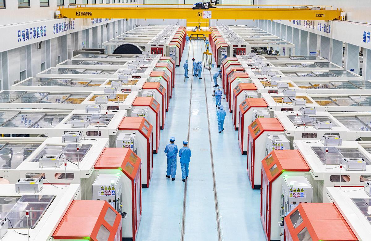 诺德锂电铜箔产业园生产车间里,一台台生箔一体机高效运转。