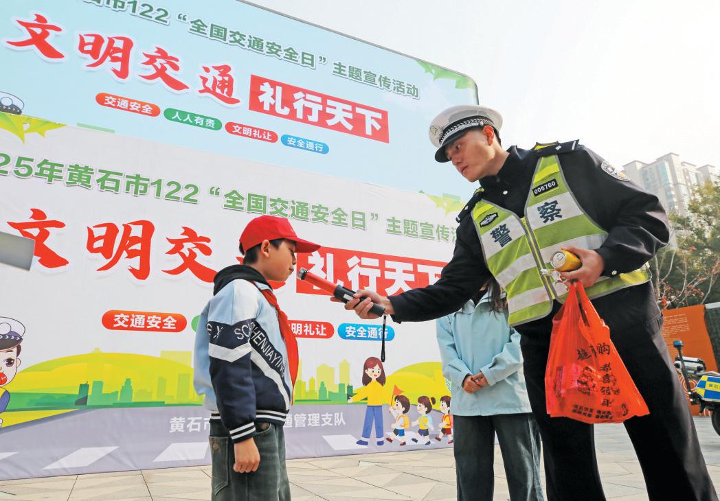 “文明交通 礼行天下”,12月2日上午,在第14个“全国交通安全日”到来之时,黄石市公安局交通管理支队在黄石钟楼步行街广场上,举行了2025年黄石市122“全国交通安全日”主题宣传活动启动仪式,并向2025年度10名黄石“文明好司机”颁发证书。