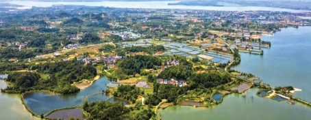 鸟瞰浮屠镇,犹如一幅美丽的山水田园画卷。