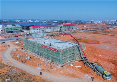 昨日,黄石临空经济区·还地桥镇科太科技创新产业园项目施工现场一派繁忙景象。该项目总投资50亿元,规划用地面积600亩。主要建设厂房、生活配套用房、园区市政配套、园区智慧系统等基础设施,打算引进入驻企业总数约200家,引导新兴产业集聚发展。记者 张成 摄