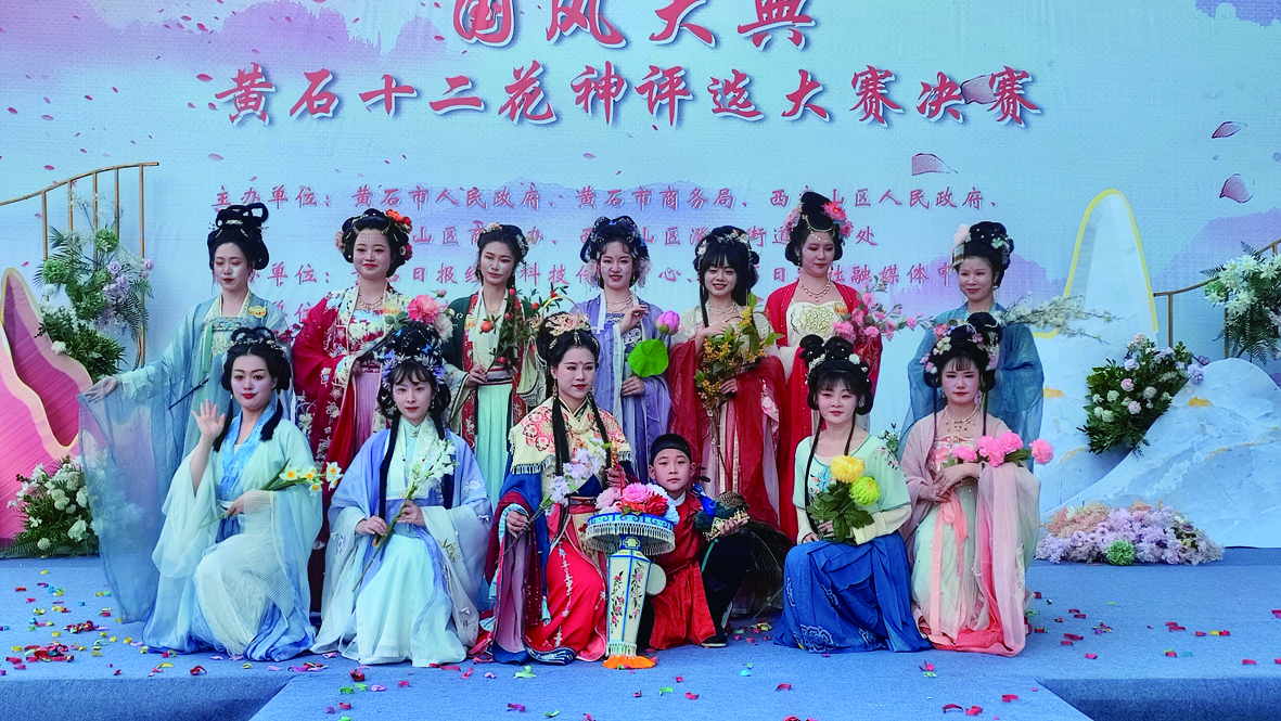 头戴珠钗,长风玉立,锦衣华裳,飘逸灵动。每当康洁穿上汉服,无法想象这位落入凡间的“仙子”其实还是一位85后专业美术老师。随着这两年“汉服潮”兴起,穿汉服出行不仅有“仪式感”,更是与美景相得益彰的新时尚。上周末,2023年十二花神评选活动决赛在黄石武商MALL前广场举行,一群汉服爱好者束发盘髻,穿着汉服,同台献艺,用独有的方式营造“中国式”的春日浪漫,而这次评选活动的冠军正是康洁。