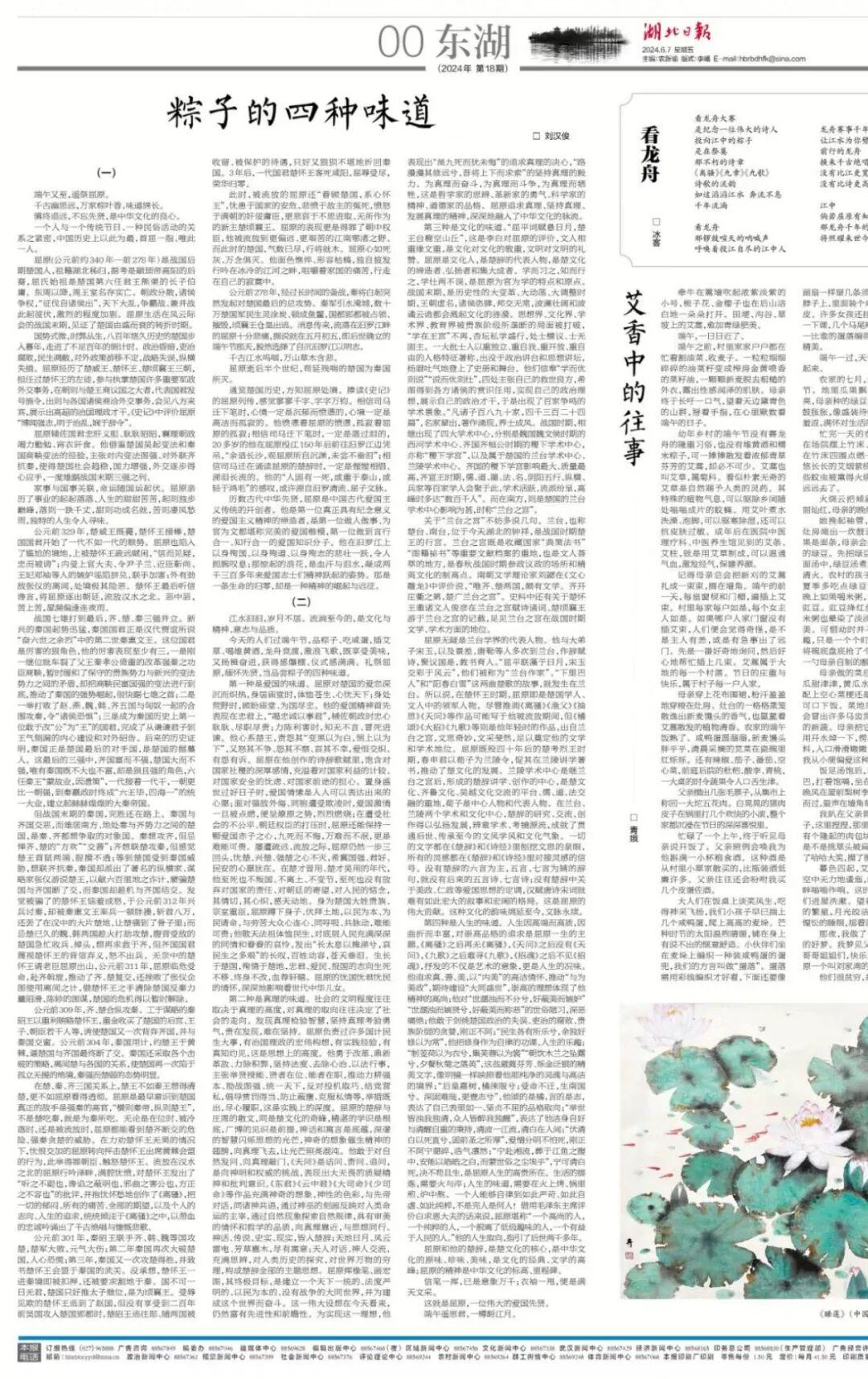 今天的人们过端午节,品粽子、吃咸蛋,插艾草、喝雄黄酒,龙舟竞渡,激浪飞歌,既享受美味,又扬楫奋进,获得感爆棚、仪式感满满。礼祭屈原,缅怀先贤,当品尝粽子的四种味道。