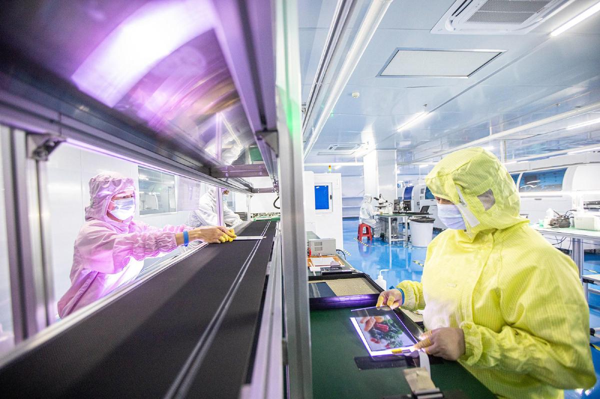 6日,大冶湖高新区湖北惠盈显示科技有限公司,工人在FOG显示屏模组生产线上忙碌,铆足干劲赶订单,奋力冲刺四季度。据了解,该公司1—8月已完成去年全年产值的2倍,发展势头强劲。