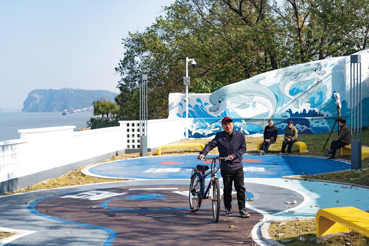 24日,市民在西塞山区中窑江滩公园新建的若水广场上散步健身,享受冬日暖阳。