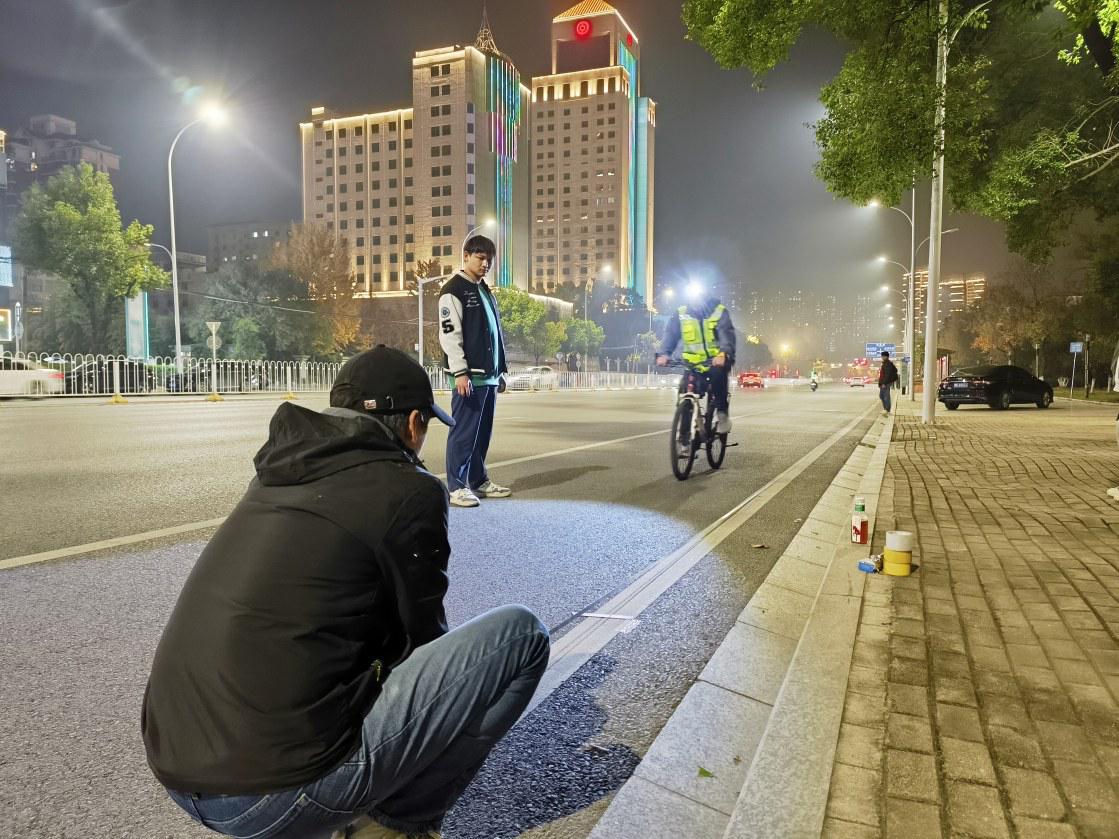 夜色下,这群“赛道先行者”的身影先后出现在了杭州东路、澄月路、颐阳路、武汉路等城市道路上。在经过3个多小时的努力后,“黄马”赛道丈量工作圆满完成。
