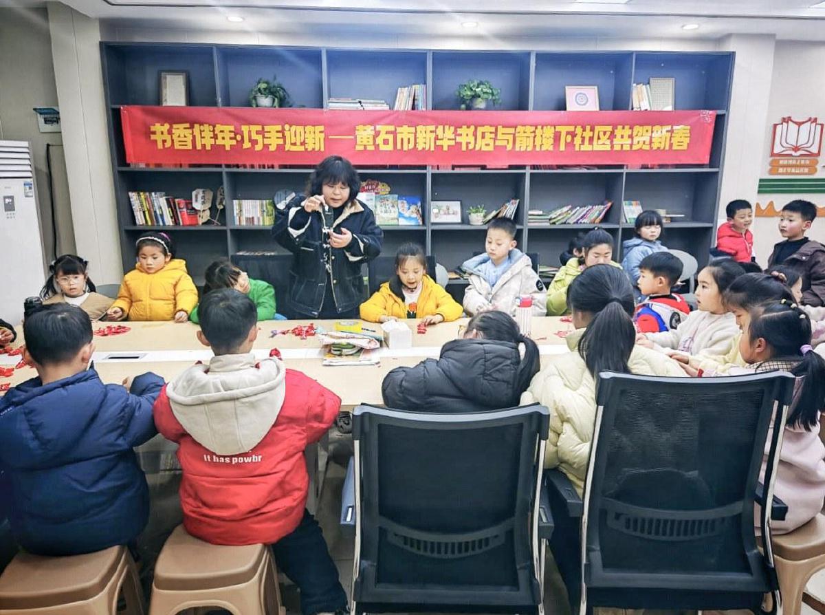 5日,黄石市新华书店联合下陆区箭楼下社区开展“书香伴年 巧手迎新”活动。孩子们听年俗故事,剪新春窗花,在书香中感受传统文化的魅力。