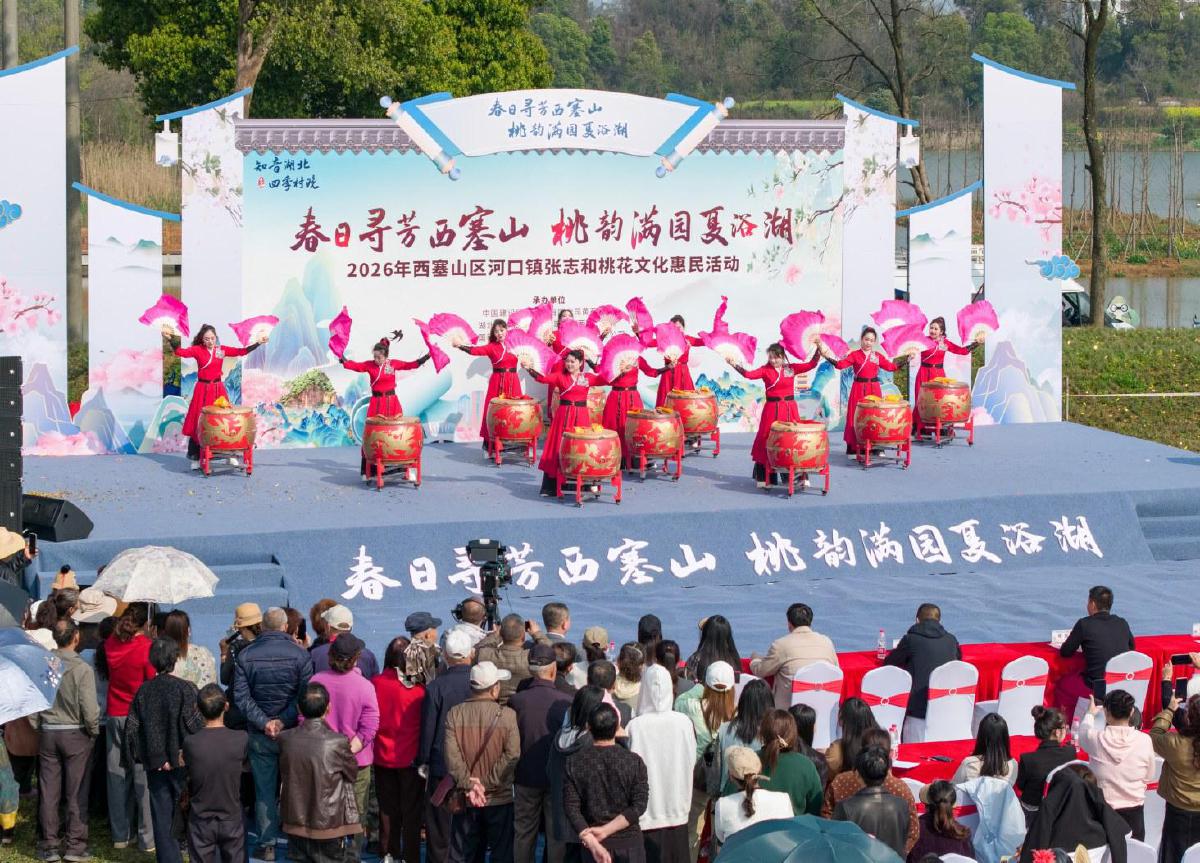 28日,2026年西塞山区河口镇张志和桃花文化惠民活动在夏浴湖举行,文艺展演与灼灼桃花交相辉映,给群众带来一场文旅盛会。 黄石融媒记者 吴山 摄