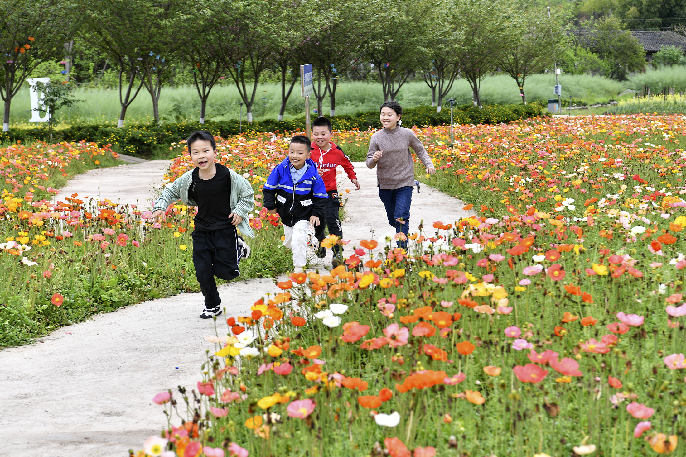 4月5日,人们在北京元大都城垣遗址公园赏花。清明假期,人们纷纷来到户外踏青休闲,感受春天的气息。