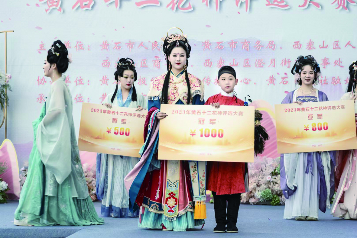 上周末,2023年十二花神评选活动决赛在黄石武商MALL前广场举行,一群汉服爱好者束发盘髻,穿着汉服,同台献艺,用独有的方式营造“中国式”的春日浪漫,而这次评选活动的冠军正是康洁