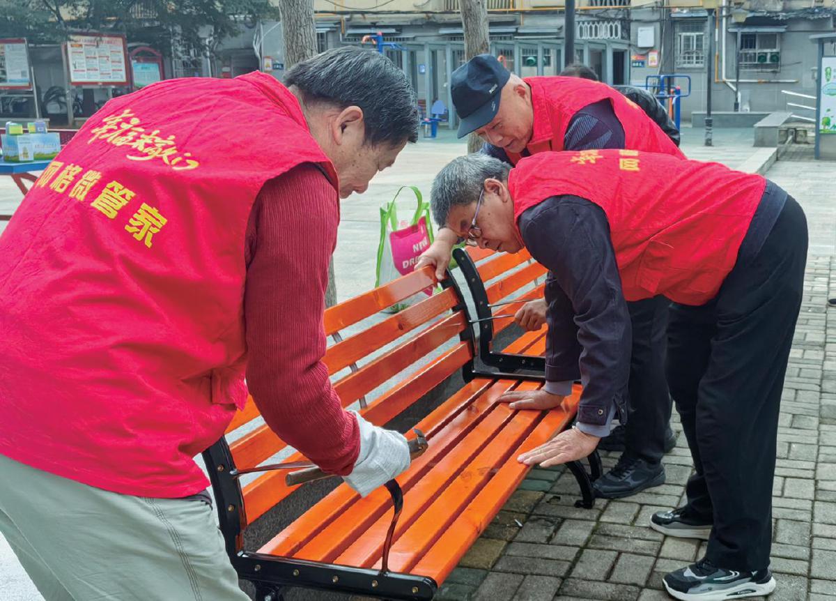 昨日,开发区·铁山区冶矿路社区志愿者安装便民座椅,切实解决居民歇脚难题,让居民住得舒适、暖心。