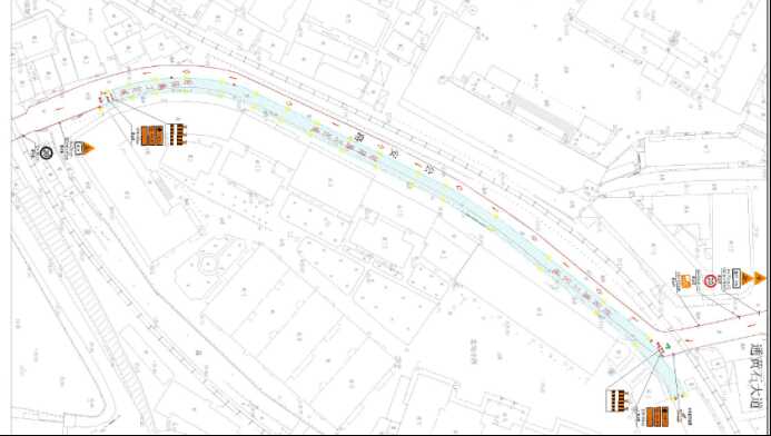 施工期间,使用围挡封闭单侧机动车道(黄石住宅小区一侧)车辆另一侧正常通行。