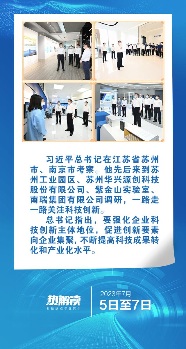 热解读7月5日至7日,习近平总书记在江苏省苏州市、南京市考察。此次江苏行,总书记先后深入苏州工业园区、苏州华兴源创科技股份有限公司、紫金山实验室、南瑞集团有限公司调研,一路走一路关注科技创新。