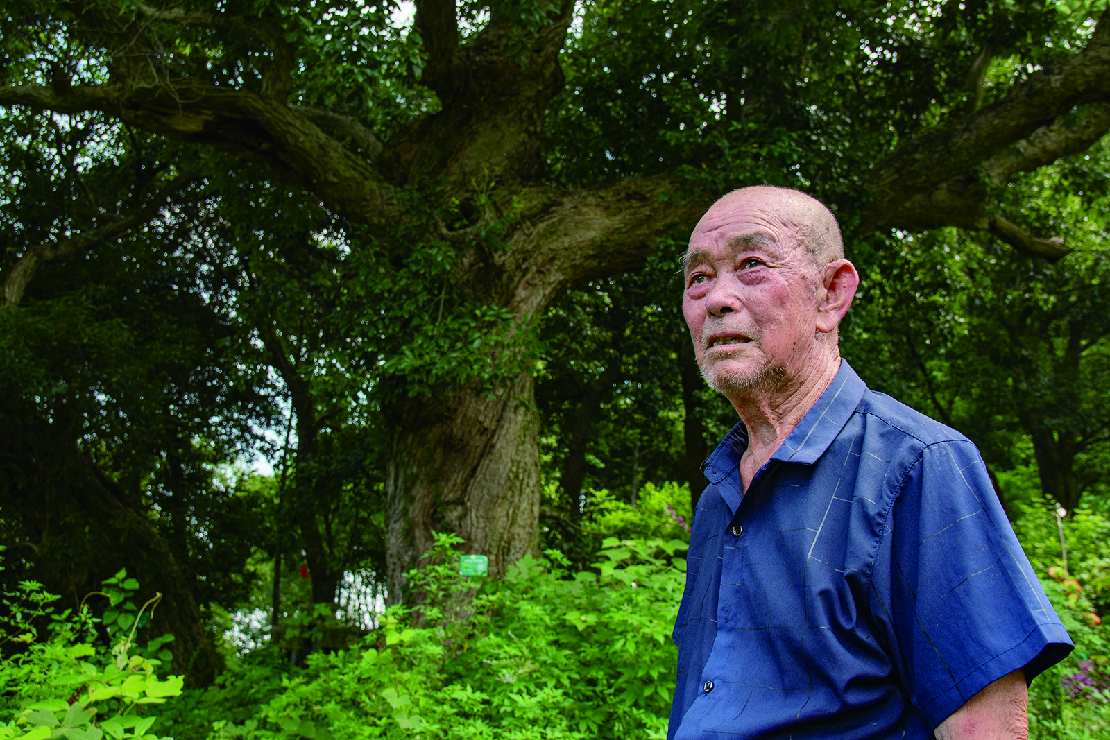 穿着短裤的陈敬宝坐在树下的草丛里,悠悠讲着老树的故事。八月时节,天气炎热,蚊虫却不叮咬他。当记者提出疑问时,他指着两棵苦槠,笑着说:“它认识我了,我们太熟了。”