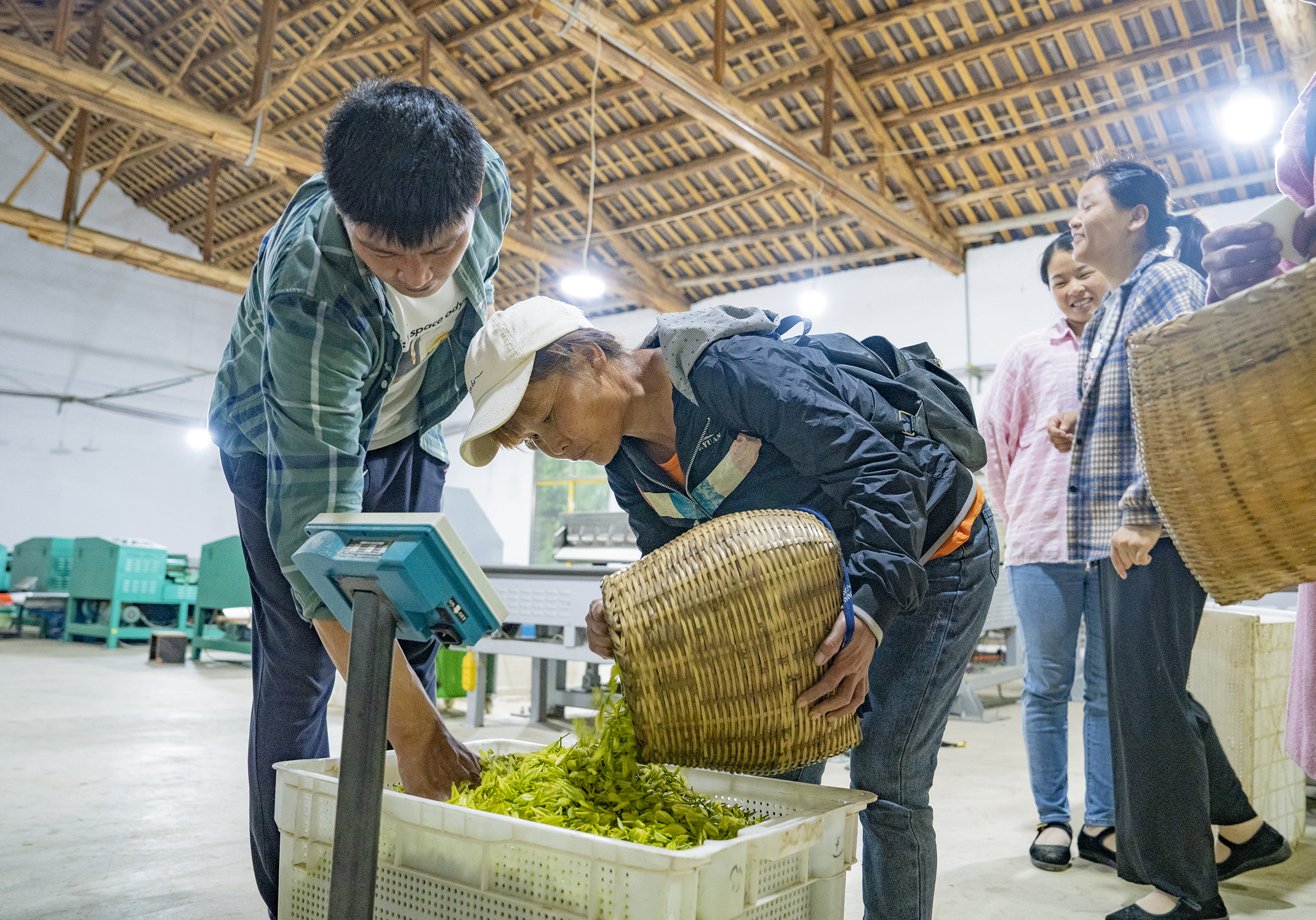 也有让他舒心的时候。记者采访的这天上午,抚公山脚附近云海缥缈,茶树在云海间忽隐忽现。茶农背着背篓,将采摘好的茶叶运到了山下,排队称重领取报酬。茶农笑,他也笑。“他们每采摘一斤,我都会支付13元报酬,动作熟练的,一上午能挣近200元。”他说,支付的工钱越多,也就意味着茶山的收益越好。