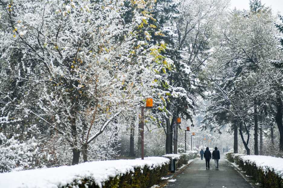 当日,吉林省长春市迎来今年秋冬季的首场降雪。