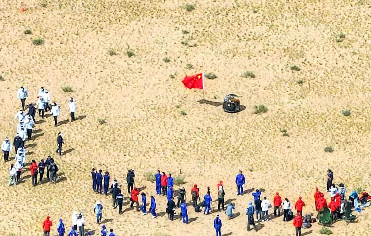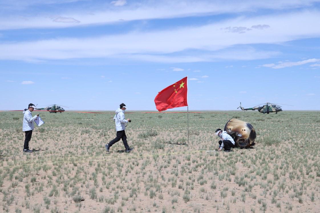 6月25日14时7分,嫦娥六号返回器携带来自月背的月球样品安全着陆。 新华社发