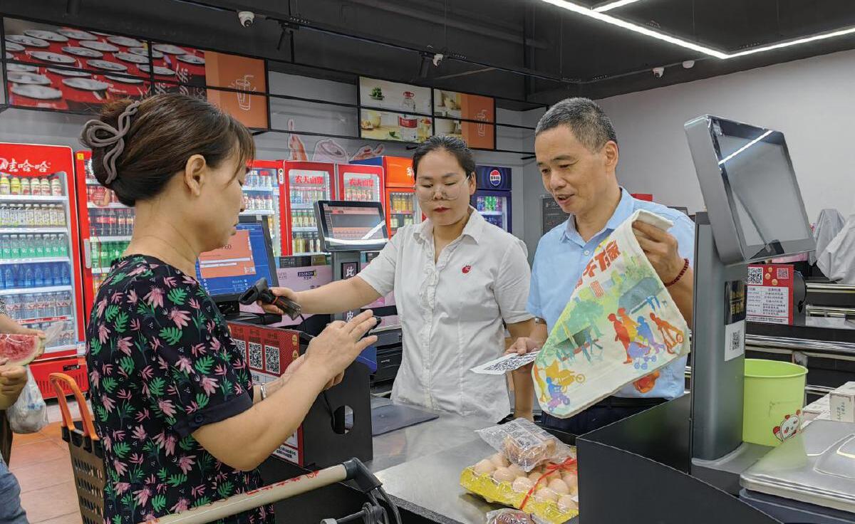 8月8日,张红光领取1000个“黄小石”文创帆布袋,随后将这些文创帆布袋分发至超市的每个收银台,开展兑换活动。