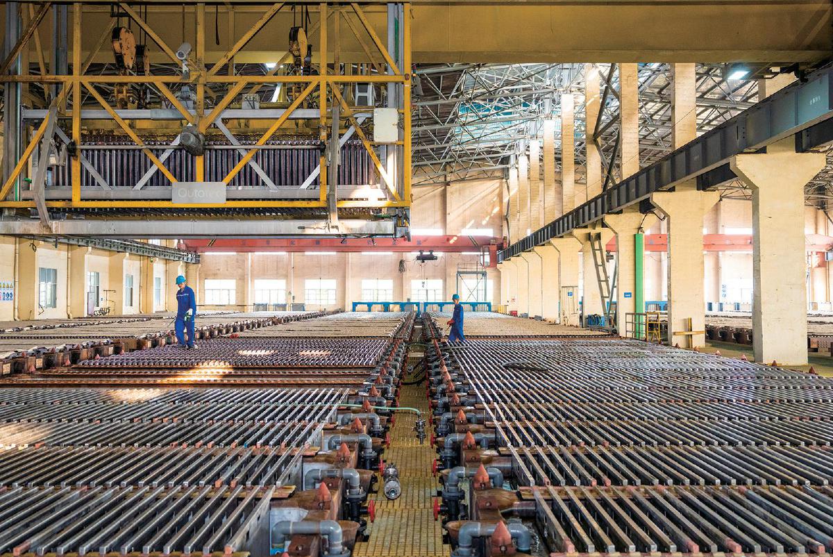 16日,大冶有色金属公司冶炼厂工人在电解车间作业。下陆区依托大冶有色金属公司、中铜华中铜业有限公司等龙头企业,聚焦铜精深加工、装备制造、循环经济等产业,加快集群强链,铜冶炼及精深加工产业链链上企业达39家,1至8月总产值达304.8亿元,同比增长40.3%。