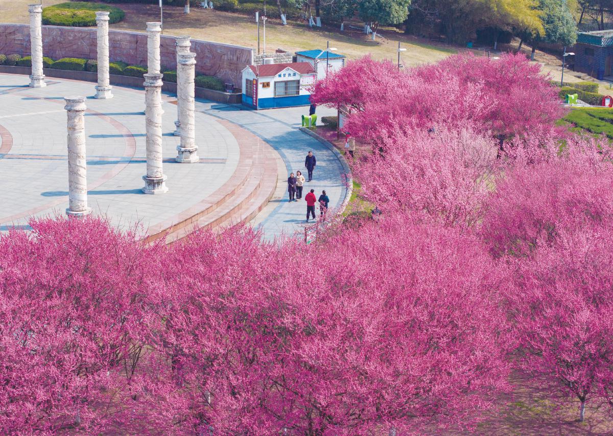 23日,春日的大冶市青铜文化广场,梅蕊初绽,暗香盈袖。游园寻香,漫步至此,初春的气息扑面而来,不少市民纷纷驻足打卡。记者 张成 摄