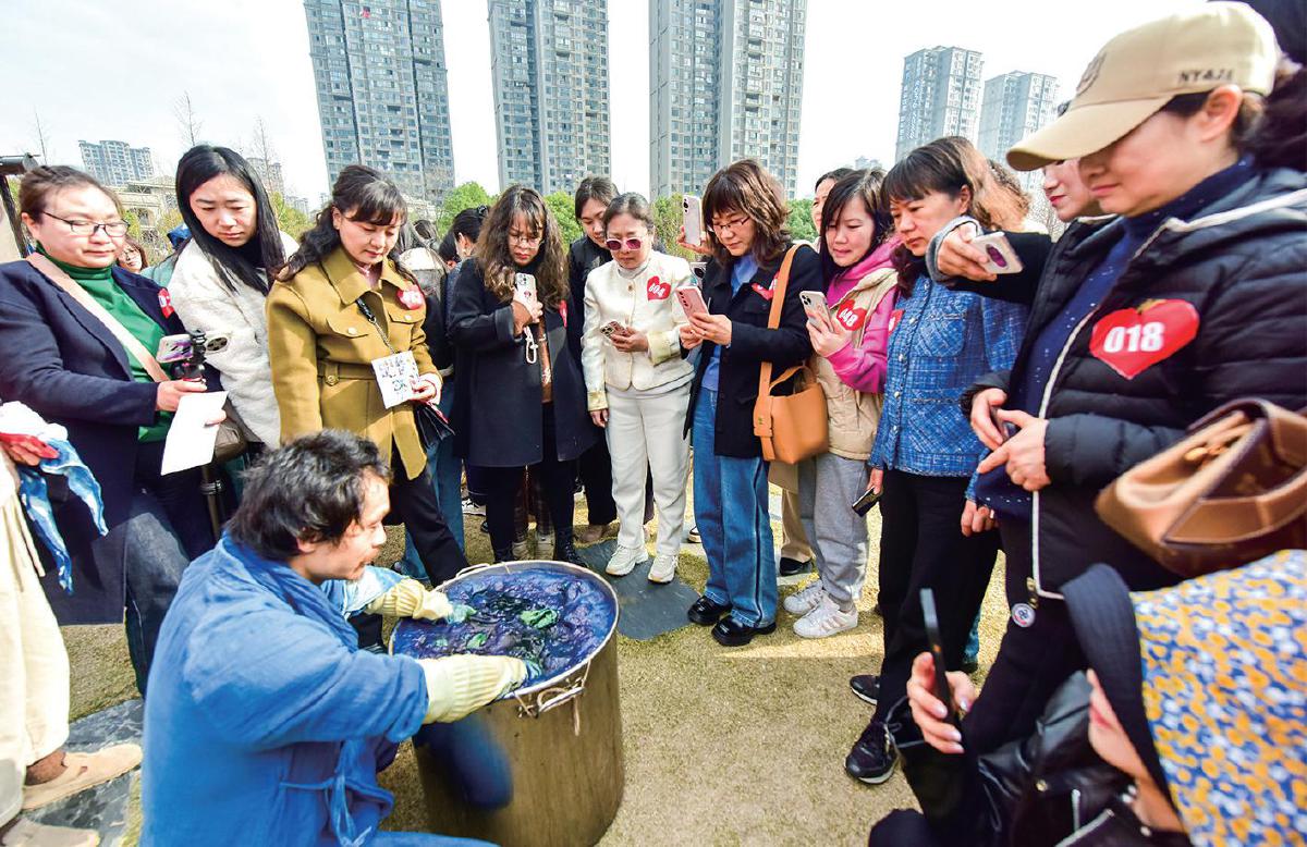 2月28日上午,黄石市总工会“弘扬传统文化 赋能美好生活”庆“三八”非遗扎染文化活动暨摄影短视频讲座在黄石湿地公园举行,全市各级工会近200名女工干部参加活动。 记者 鄢巍 摄