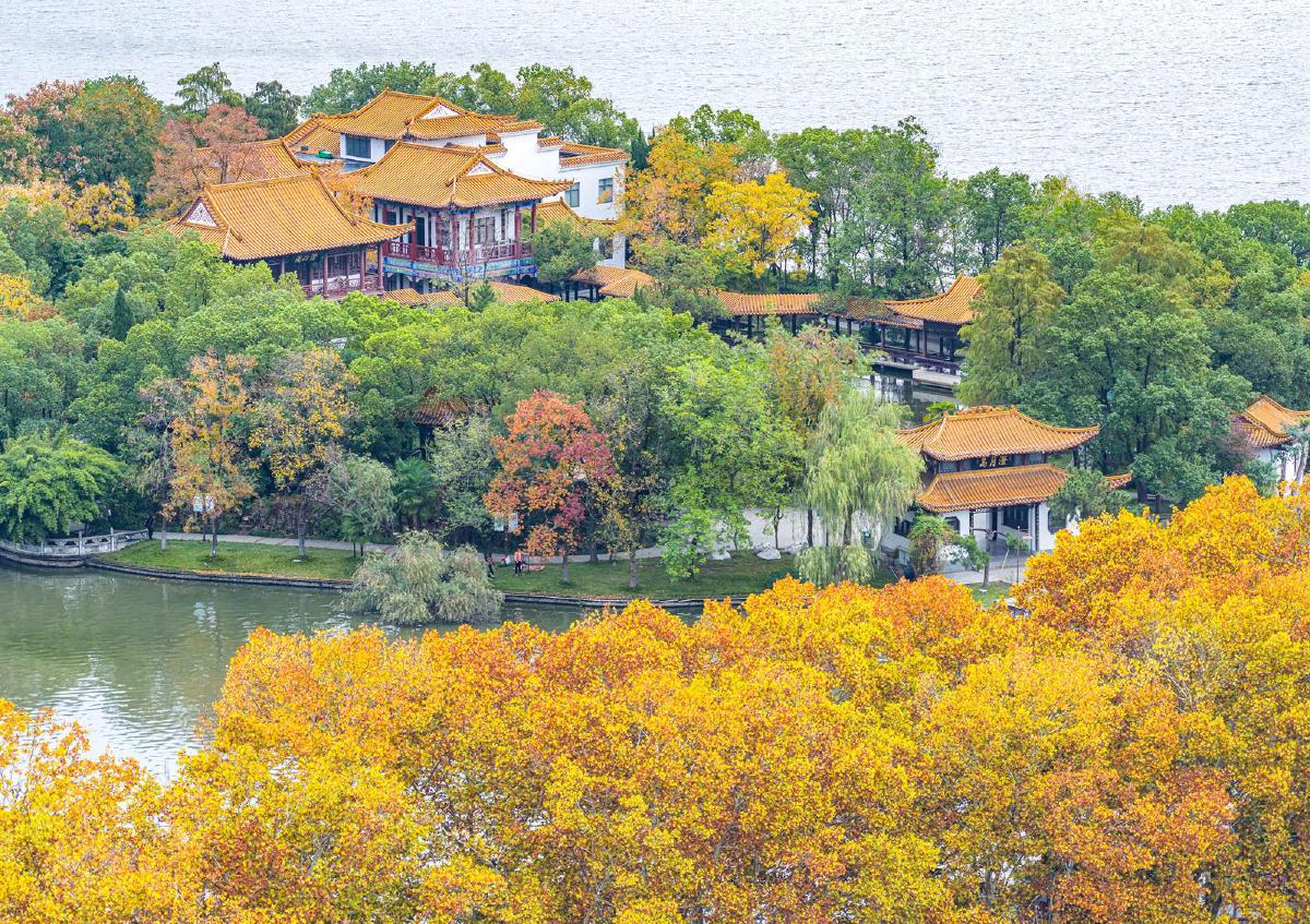 10日,澄月路梧桐树树叶金黄,与澄月岛、磁湖构成了一幅多彩的冬日画卷,美不胜收。近年来,黄石市加强自然资源的整体规划,充分利用优美的城市山水林自然风光,积极推进水环境建设,持续改善城市自然生态环境。 记者 周巍 摄