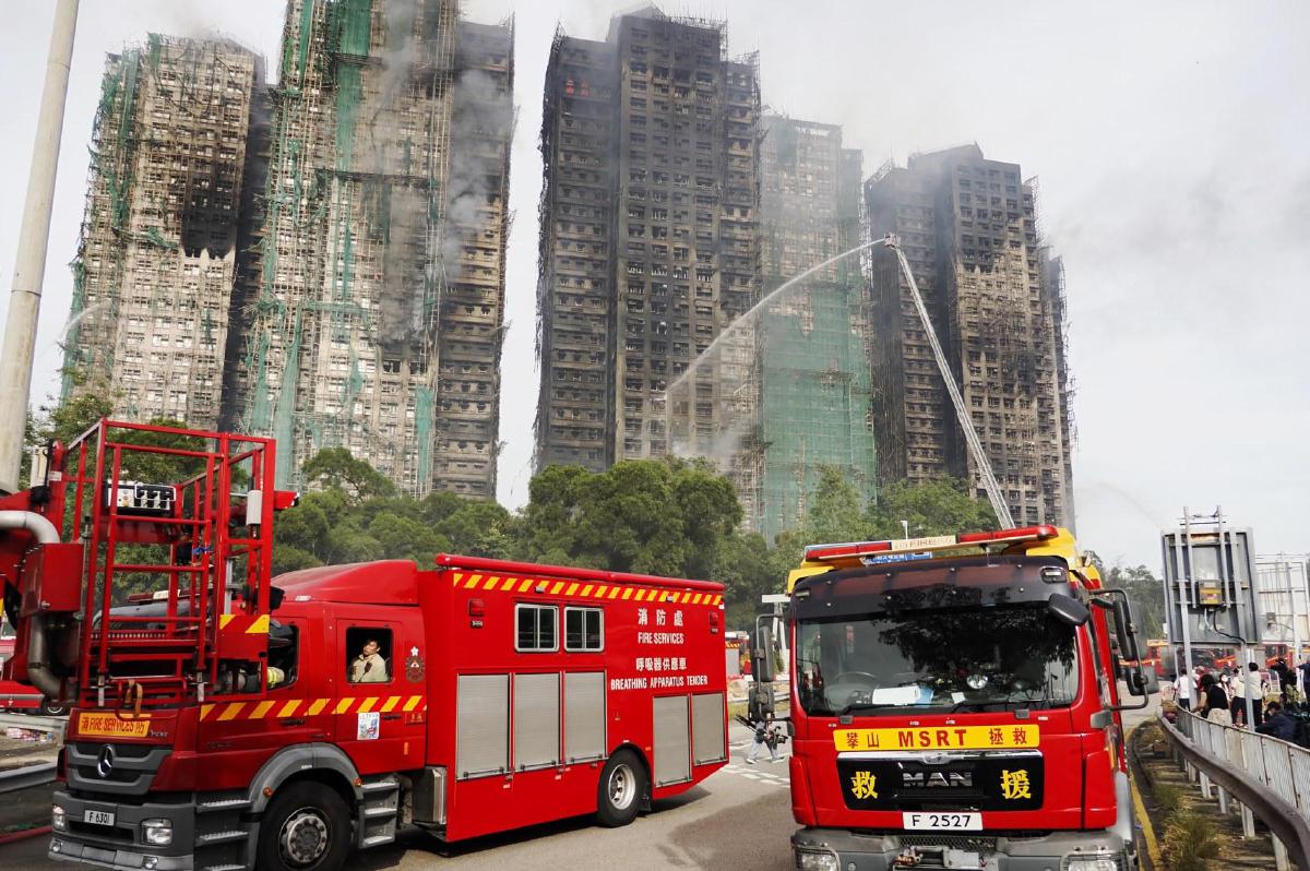 香港新界大埔区宏福苑26日下午发生五级火警。记者26日晚间至27日清晨在现场看到,特区政府有关部门正全力扑灭火灾,在社会各界的协助下妥善安置受灾居民,千方百计降低损失。