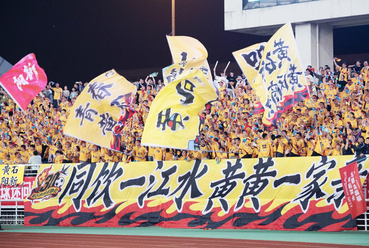 4月18日晚,黄冈队在主场以6比0大胜神农架队。“楚超”此役吸引近1.8万名观众到场观赛,800多名黄石球迷跨江奔赴现场,为两队加油助威。黄石融媒记者 石勇 摄