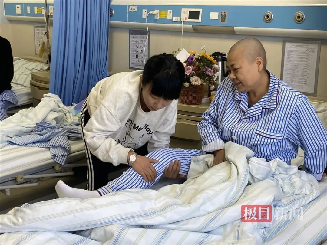 这一消息犹如晴天霹雳,正准备好好享受退休生活的她却得了癌症,这让陈辉一时之间很难接受。就在人生的至暗时刻,同为黄石文明宣导总队的队员吕明得知她住院的消息,主动请缨来到中南医院陪护着她,“她曾经帮助过很多人,不计报酬,不求回报,当她自己生病时,我想她内心也十分需要别人的帮助和温暖。”吕明告诉极目新闻记者。记者在病区看到,住院期间两人就如同亲姐妹一般,吕明每天为陈辉擦身洗衣,帮助她做抗腿部血栓锻炼,累了困了就支起一个小凳子,趴在陈辉的床头,始终寸步不离。