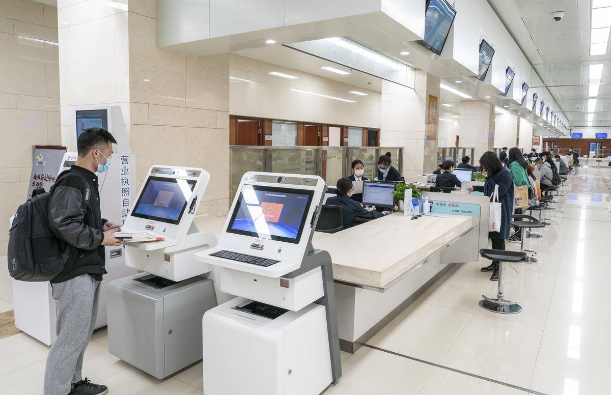 武汉东湖新技术开发区公共服务中心,办事群众在企业登记服务专区自助打印营业执照。(湖北日报全媒记者 魏铼 摄)
