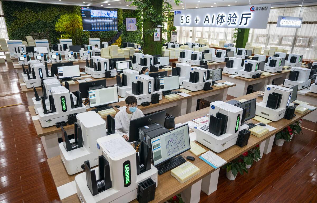 兰丁智能 武汉兰丁智能医学股份有限公司科研人员进行宫颈癌样本扫描。 (湖北日报全媒记者 魏铼 摄)
