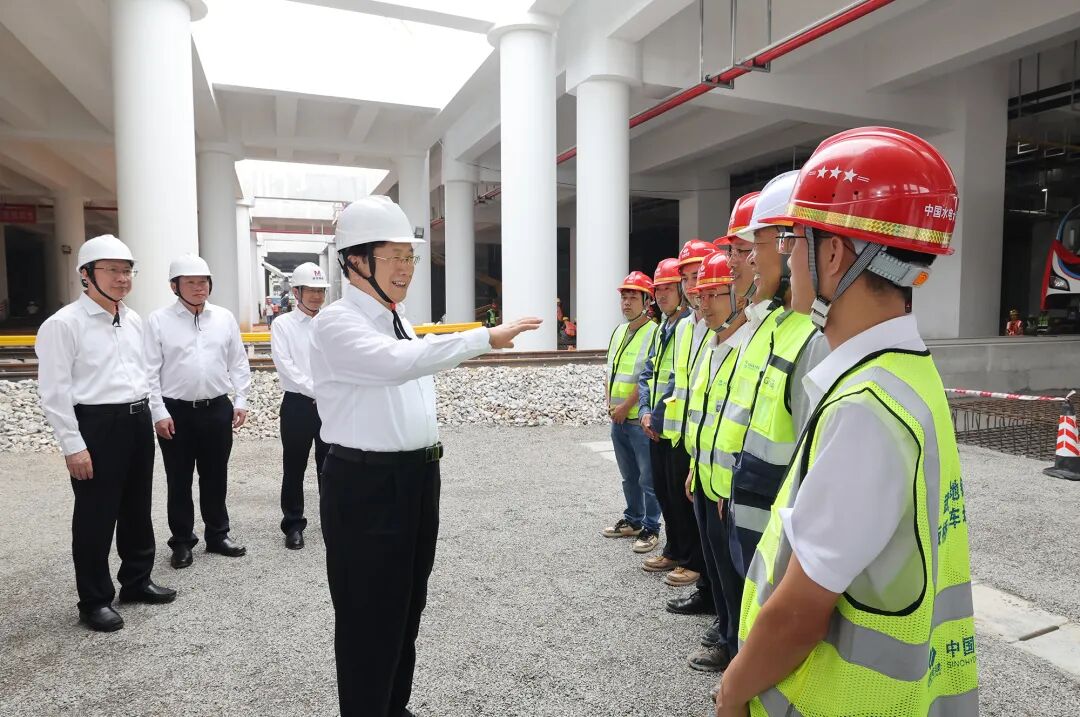 武汉市轨道交通12号线全长59.9公里,是世界第二、亚洲第一长的地铁环线,其中板桥停车场是承担地铁列车停车列检等功能的重要设施,目前正抓紧建设。王忠林走进项目工地,看望慰问一线建设者,实地察看项目建设进度,检查安全生产工作。他指出,轨道交通12号线是重要的城市基础设施和民生工程,对于完善武汉城市交通网络、满足群众高品质出行需求具有重要意义。各建设单位要坚持以人民为中心的发展思想,倒排工期、挂图作战,加快项目建设进度,确保早建成、早投用、早受益。要保证工程质量,严把原材料、施工工艺等关口,打造经得起历史、实践和人民检验的精品工程。要强化安全管理,在精细、精准上下功夫,落实好每一项责任、抓好每一个细节、堵塞每一个漏洞,确保项目安全平稳推进。要加强生态保护,严格落实降尘降噪、渣土管理等措施,最大限度减少对周边环境和居民生活的影响。