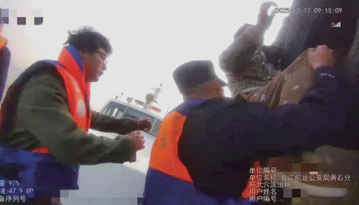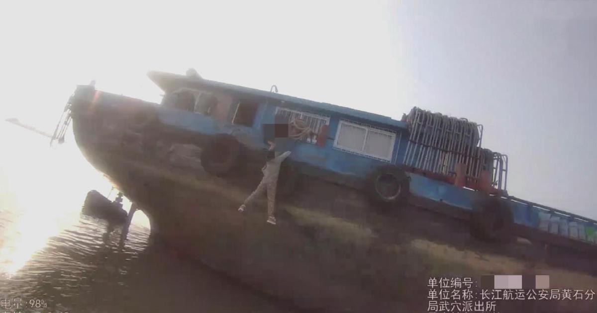 本报讯(记者 李飞 通讯员 方杰)12月17日,长江武穴锚地一艘货船上发生惊险一幕:一名女子翻越船舷意欲轻生,身体悬空,仅靠其丈夫在甲板上死死拉住。危急时刻,长江航运公安局黄石分局民警驾艇及时赶到,成功将女子救起。